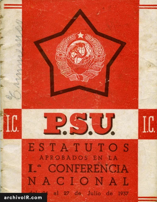 P.S.U. Estatutos aprobados en la 1ª conferencia nacional, del 24al 27 de julio de 1937.