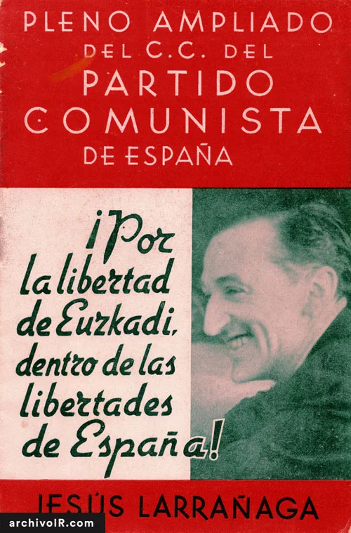 Pleno ampliado del comité central del Partido Comunista de España . Por la libertad de Euzkadi, dentro de las libertades de España